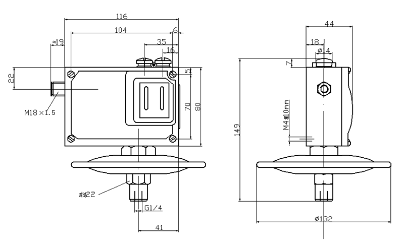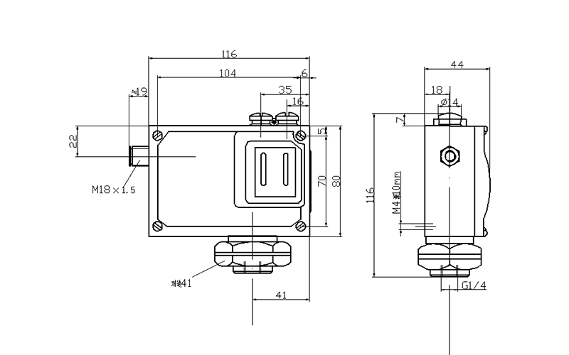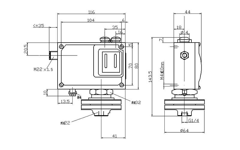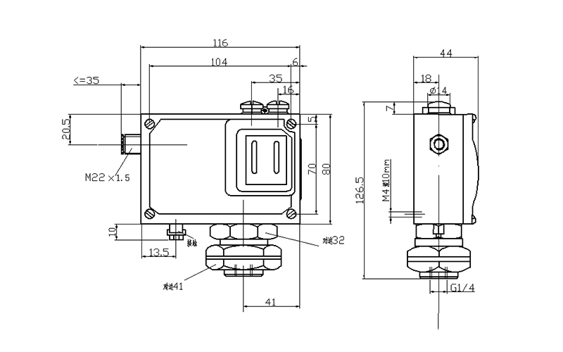 500/7D防爆壓力開關(guān)外形及安裝尺寸(單位:mm)