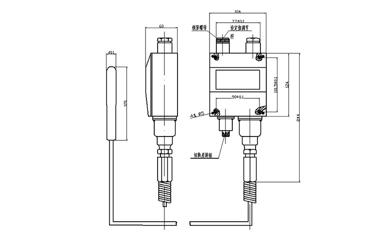 欲控制溫度不超過(guò)某一給定壓力值(即上切換值)時(shí),指針應(yīng)調(diào)整在比此給定值低一個(gè)切換差值(即下切換值)的位置上,調(diào)整完畢后,不準(zhǔn)再旋動(dòng)切換差旋鈕;
